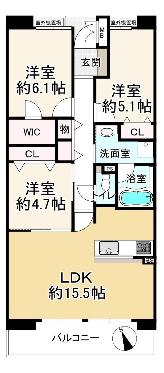| 間取 | 3LDK ペット可 |