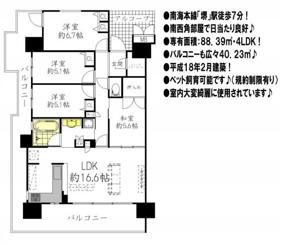 | バルコニー面積 | 40.23㎡ |
