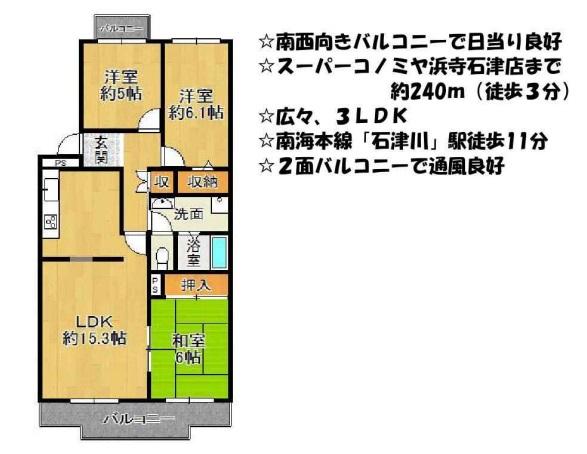 | 最寄駅 | 南海本線 石津川駅 徒歩11分 |